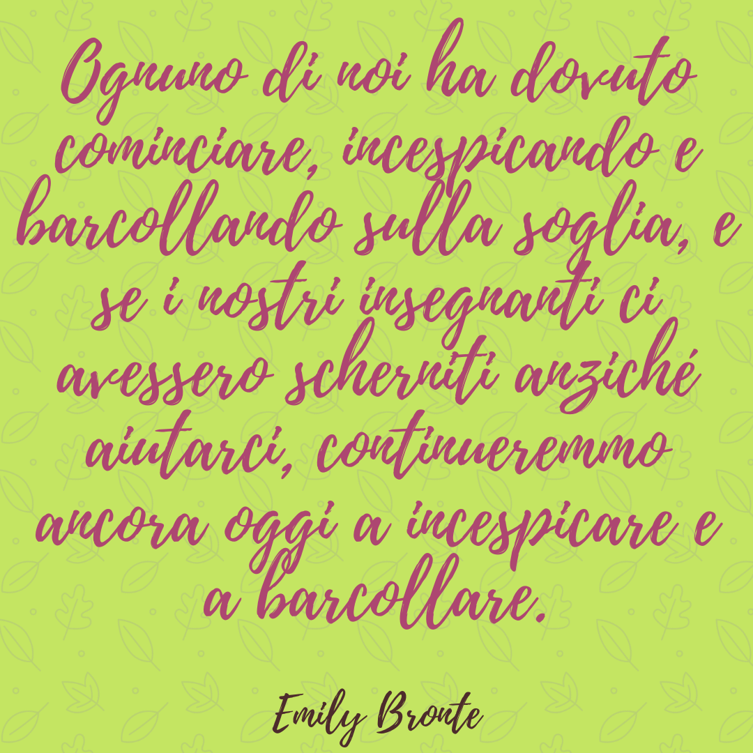 Ognuno di noi ha dovuto cominciare, incespicando e barcollando sulla soglia, e se i nostri insegnanti ci avessero scherniti anziché aiutarci, continueremmo ancora oggi a incespicare e a barcollare.